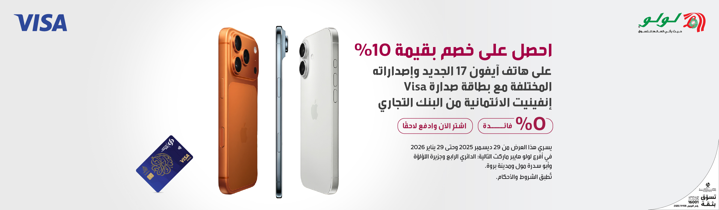 احصل على خصم بقيمة 10% على هاتف آيفون 17 الجديد وإصداراته المختلفة مع بطاقة صدارة Visa إنفينيت الائتمانية من البنك التجاري