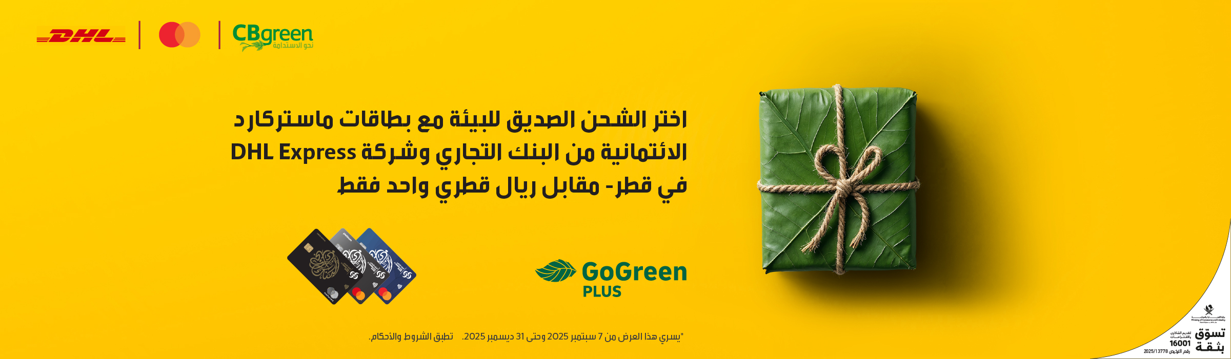 اختر الشحن الصديق للبيئة مع بطاقات ماستركارد الائتمانية من البنك التجاري وشركة DHL Express في قطر- مقابل ريال قطري واحد فقط