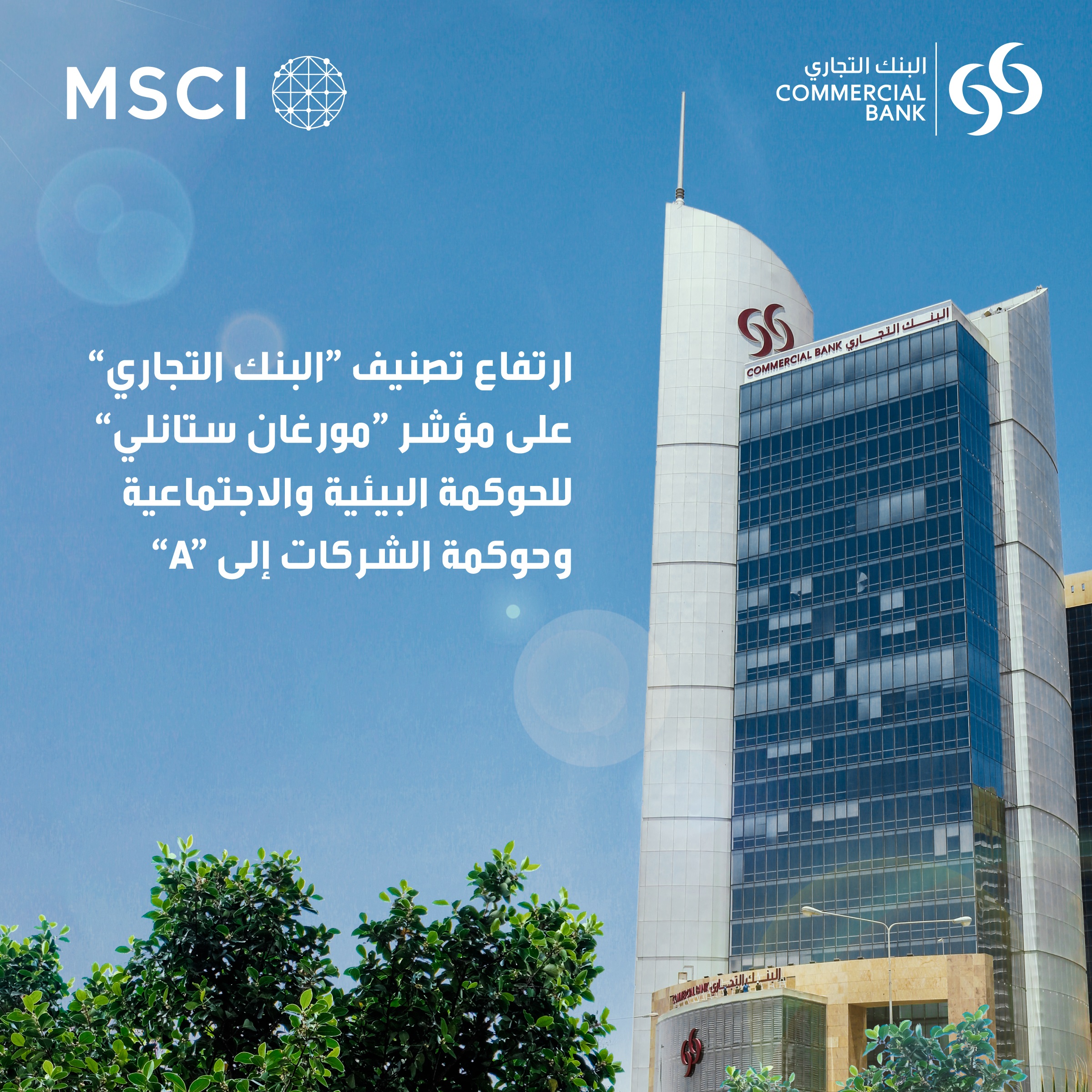 ارتفاع تصنيف «البنك التجاري» على مؤشر «مورغان ستانلي» للحوكمة البيئية والاجتماعية وحوكمة الشركات إلى "A"