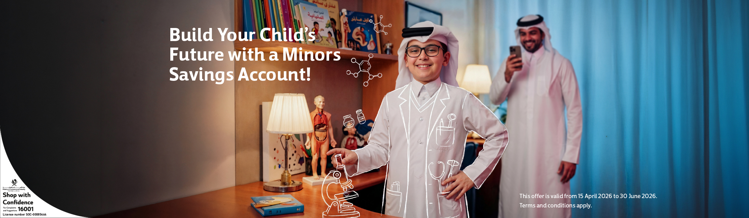 - A standing order of QAR 500/month for one year must be set up for the child’s account.