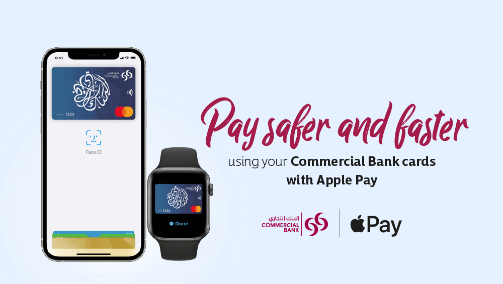 Qatar, Doha: November 3rd, 2021 — Commercial Bank, brings its customers Apple Pay, a safer, more secure, and private way to pay. Apple Pay helps customers avoid handing their payment card to someone else, touching physical buttons or most importantly exchanging cash, in addition to using the power of iPhone to protect every transaction.