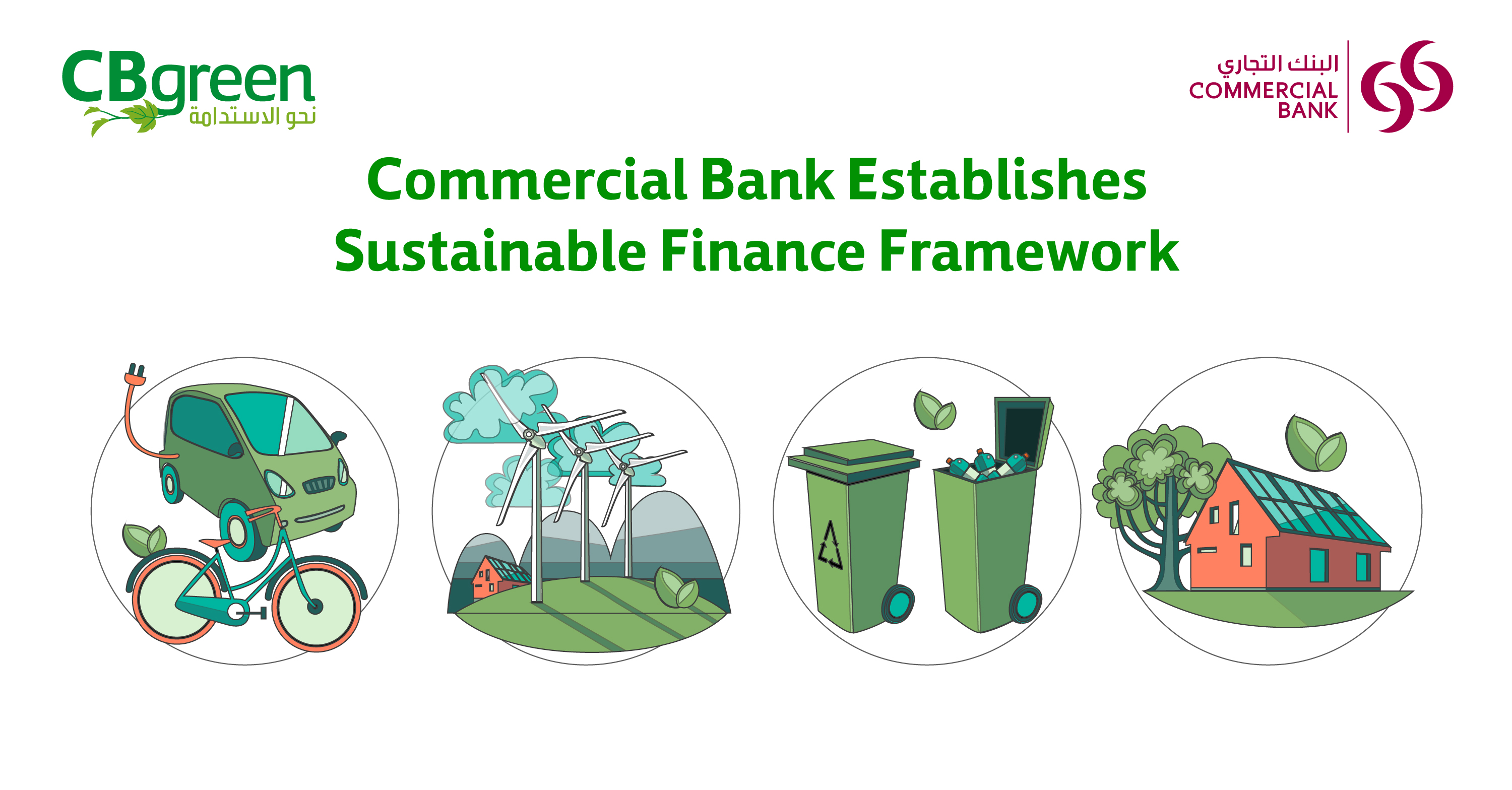 Commercial Bank is committed to the Qatar National Vision 2030 which aims to transform Qatar into an advanced society capable of achieving sustainable development by 2030 through four interconnected pillars: environmental, economic, social, and human development. Commercial Bank intends to use this Framework as a tool to support the 2030 Vision, Qatar's National Environment, and Climate Change Strategies through enabling business growth and supporting our clients in their transition towards to sustainability.