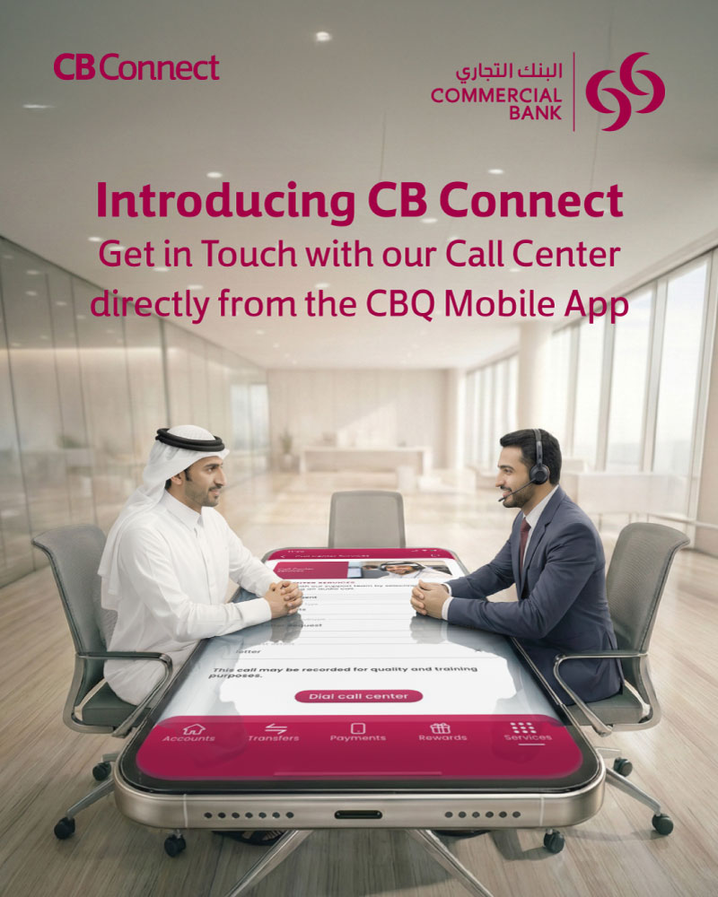 Doha, Qatar – 24 March 2026: Commercial Bank has announced the launch of CB Connect, a new Mobile App Direct Call Dial functionality, becoming the first bank in the region to offer customers the ability to connect instantly with a call center agent directly from the CBQ Mobile App. This innovative capability reinforces the Bank’s commitment to delivering seamless, secure, and customer-focused digital solutions while enhancing the overall customer experience.CB Connect enables customers to speak to a live agent from the Bank without the need for repetitive identity verification, as authentication is securely completed during the app login process. By eliminating manual verification steps, the solution reduces call handling time, streamlines support interactions, and significantly enhances the overall customer experience.