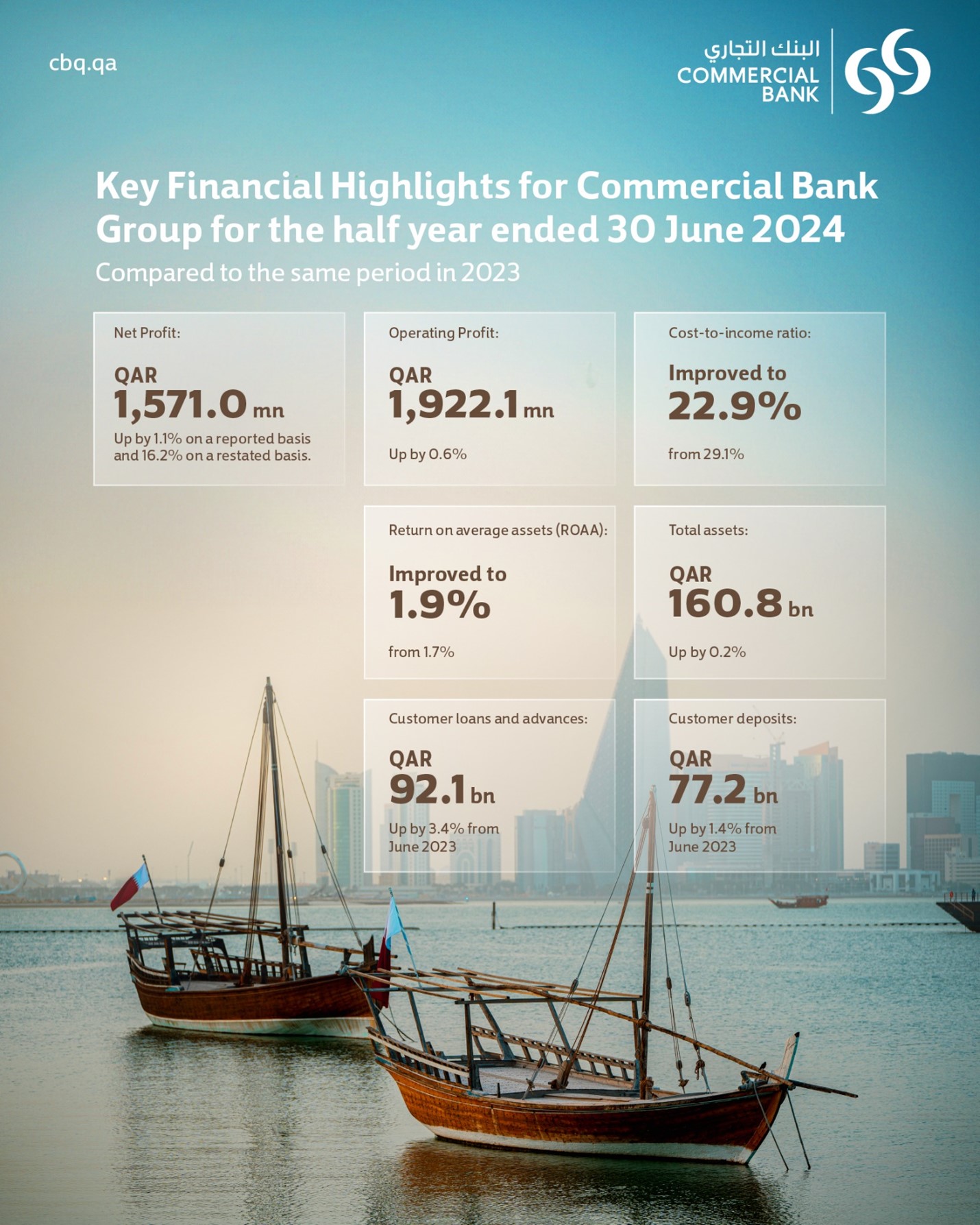 The Commercial Bank (P.S.Q.C.) Announces Net Profit of QAR 1,571.0 million for the half year ended 30 June 2024