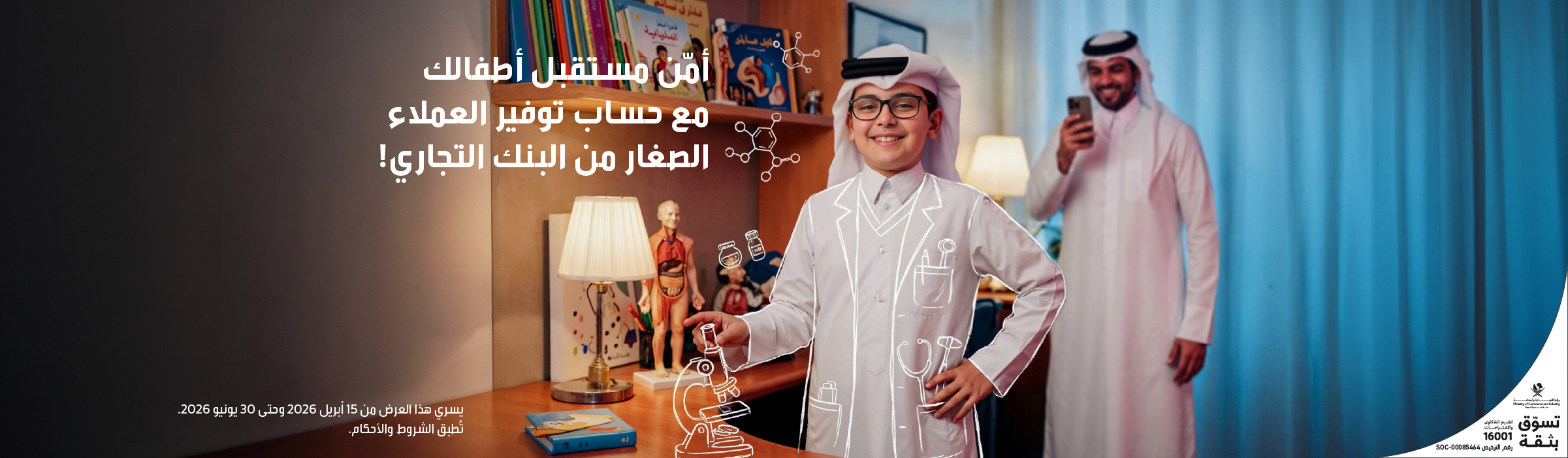وانطلاقًا من التزامنا المستمر بتعزيز الثقافة المالية وتمكين الأجيال القادمة، يسرّ البنك التجاري الإعلان عن إطلاق حملة حساب التوفير للعملاء الصغار. تهدف هذه المبادرة إلى تمكين الجيل الصاعد من بناء قاعدة مالية متينة تدعم تطلعاتهم المستقبلية، عبر تزويدهم بالأدوات والمعرفة اللازمة لتحقيق النجاح منذ البداية.