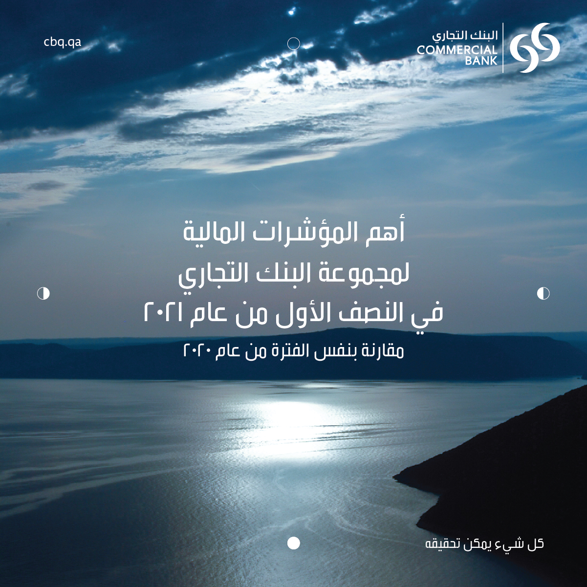 أعلن البنك التجاري (ش.م.ع.ق) ("البنك") وشركاته التابعة والزميلة ("المجموعة") اليوم عن نتائجه الماليّة لنصف السنة المنتهي في 30 يونيو 2021. وأعلنت المجموعة عن صافي أرباح بقيمة 1,327.3 مليون ريال قطري مقارنةً بصافي أرباح بقيمة 901.2 مليون ريال قطري عن الفترة نفسها من 2020.