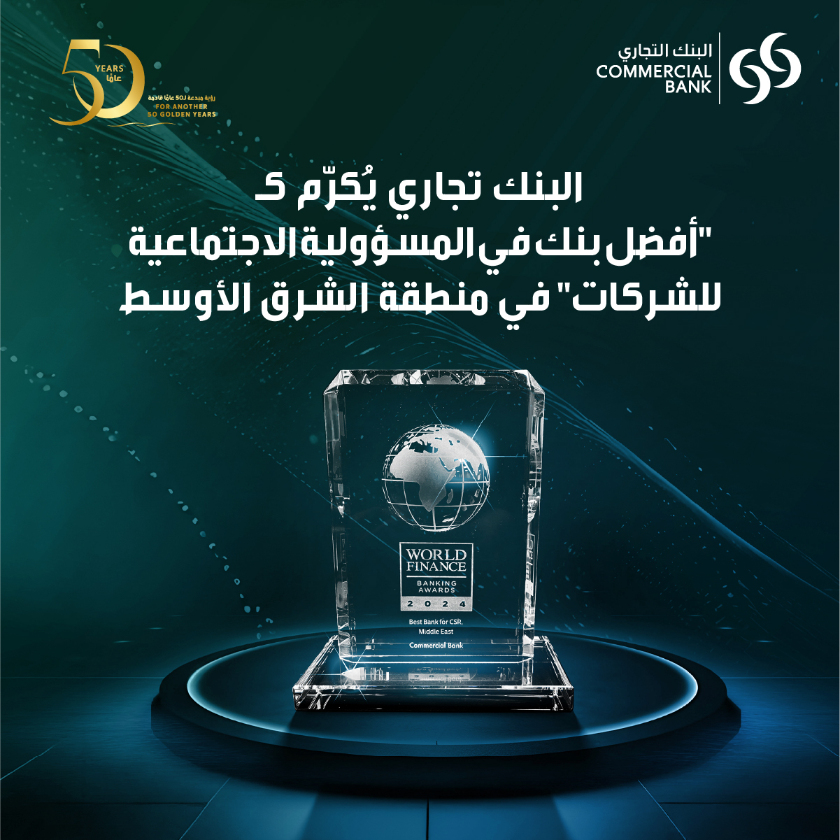 تشرّف البنك التجاري بتسلّمه جائزة تقديرية من وزارة البيئة والتغيّر المناخي، خلال الحفل الوطني لتدشين الاستراتيجية الوطنية لمكافحة التصحر في دولة قطر.