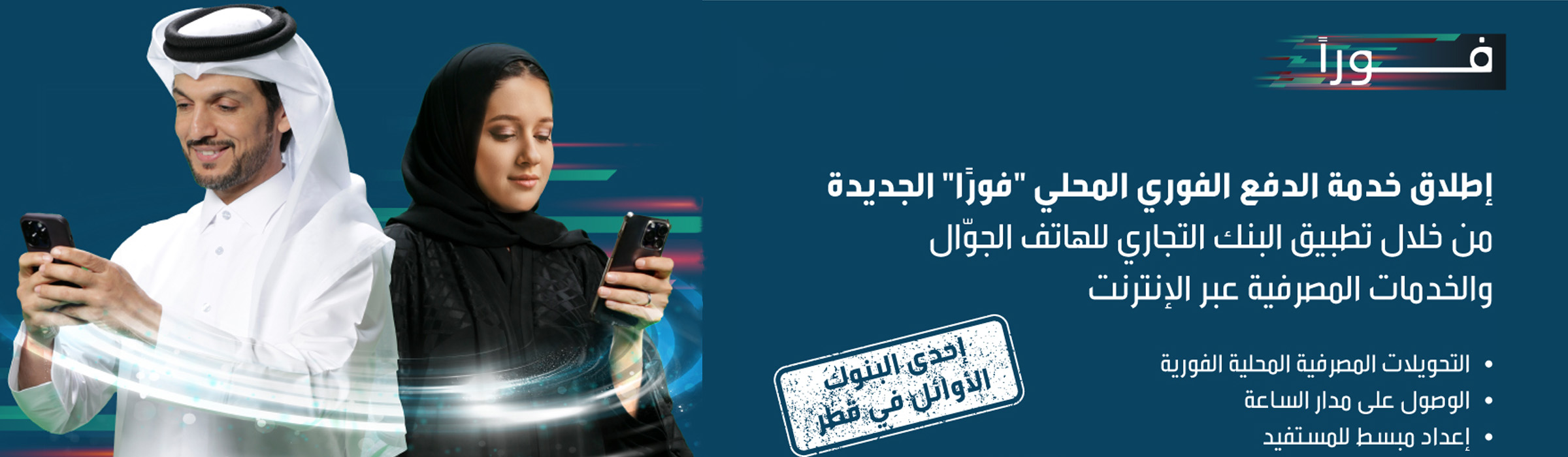إن خدمة الدفع الفوري المحلي "فورًا" قد فتحت الأفق لحقبة جديدة في عالم المصرفي حيث ينصب تركيزنا على تزويدك بتجربة مصرفية مبتكرة ومريحة وسلسة