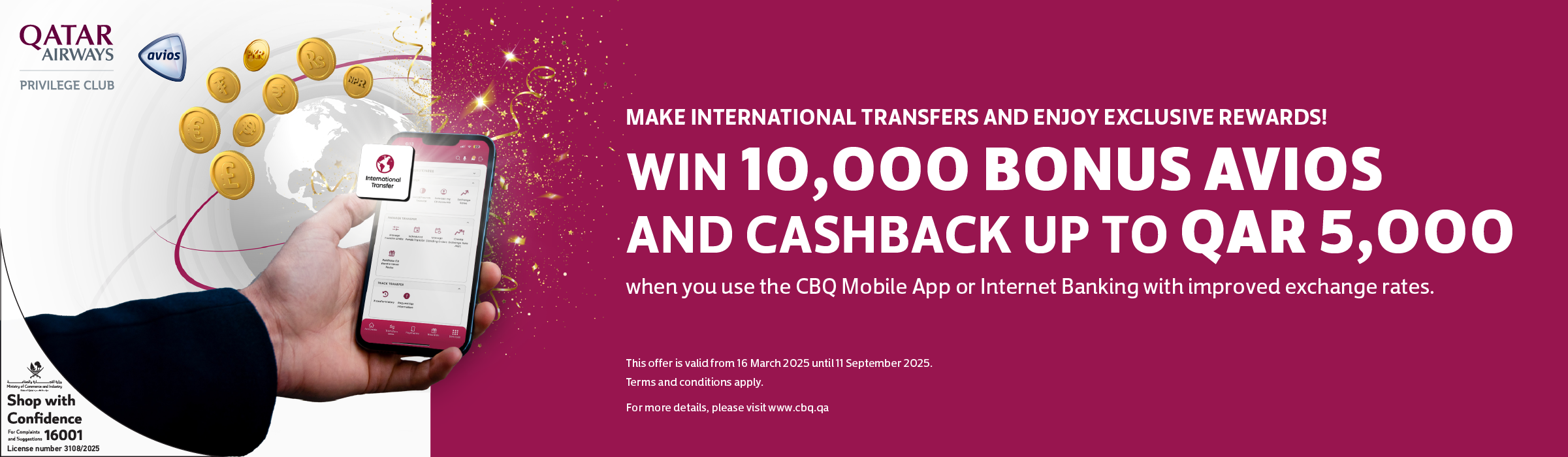 Instant Cash Pickup Service to Pakistan using CBQ Mobile App or Internet Banking