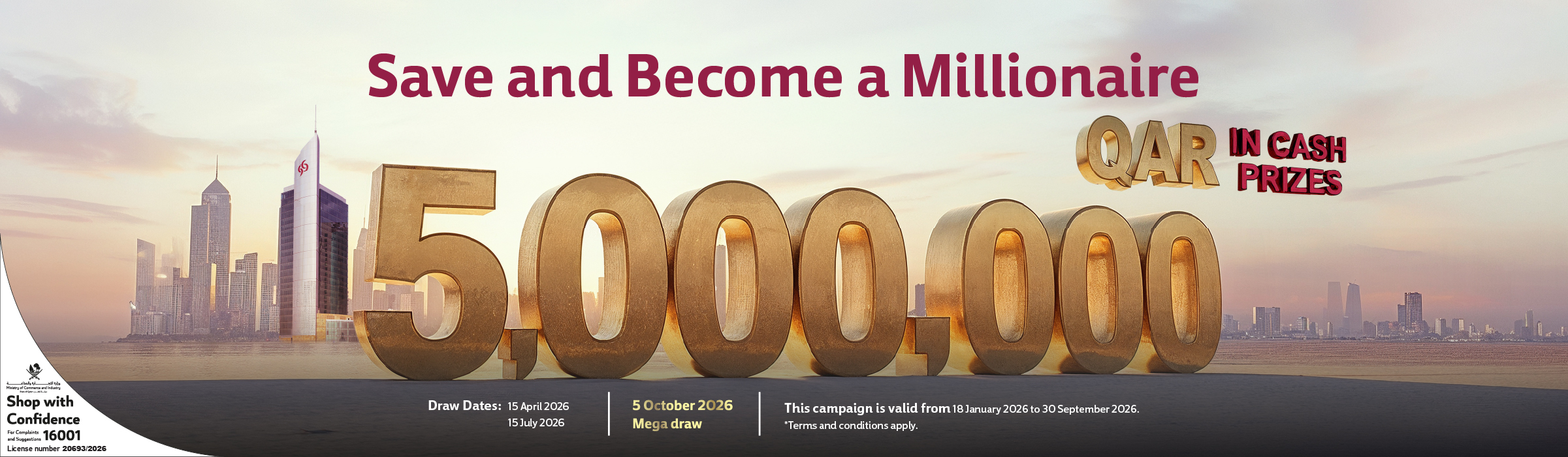 - Grow your savings: Earn 1 draw entry for every QAR 10,000 increase in your average monthly balance (Current or Savings accounts).