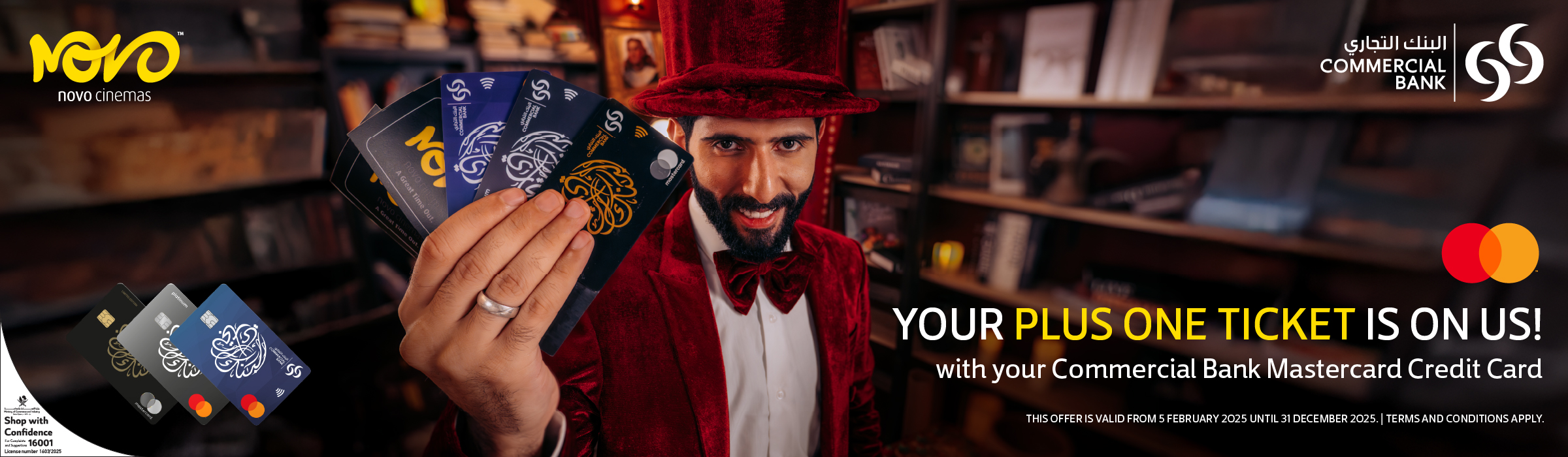 You will be redirected to the website of Novo Cinemas to avail the offer. Please remember that Commercial Bank will never send you a link asking you to log in to your account or share your personal details.
