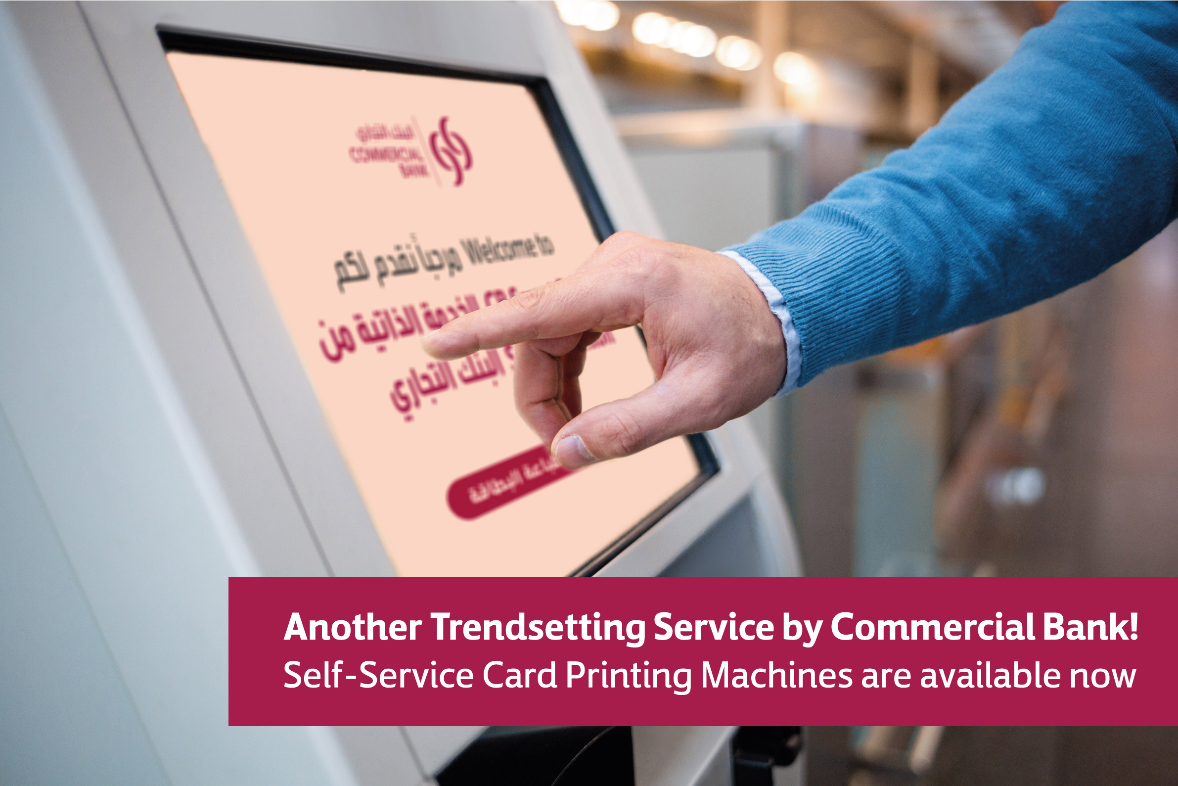 Doha, Qatar: October 24th, 2021: Commercial Bank, the leading digital bank in Qatar, is introducing its latest innovative service, the Self-Service Card Printing Machines. This launch comes in alignment with the bank's strategy to enhance the customer's banking experience via digitalization and process automation. An instant self-service card printing experience will be available for Commercial Bank Cardholders through the Self-Service Card Printing Machines placed at convenient customer locations for all new card, renewed card and card replacement requests.