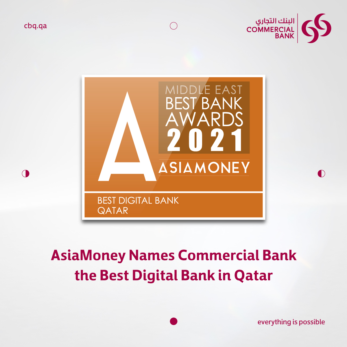 Doha, Qatar: Adding a new award to its recent accolades, Commercial Bank has received the “Best Digital Bank" award in Qatar for 2021 by AsiaMoney Magazine for the second year in a row.