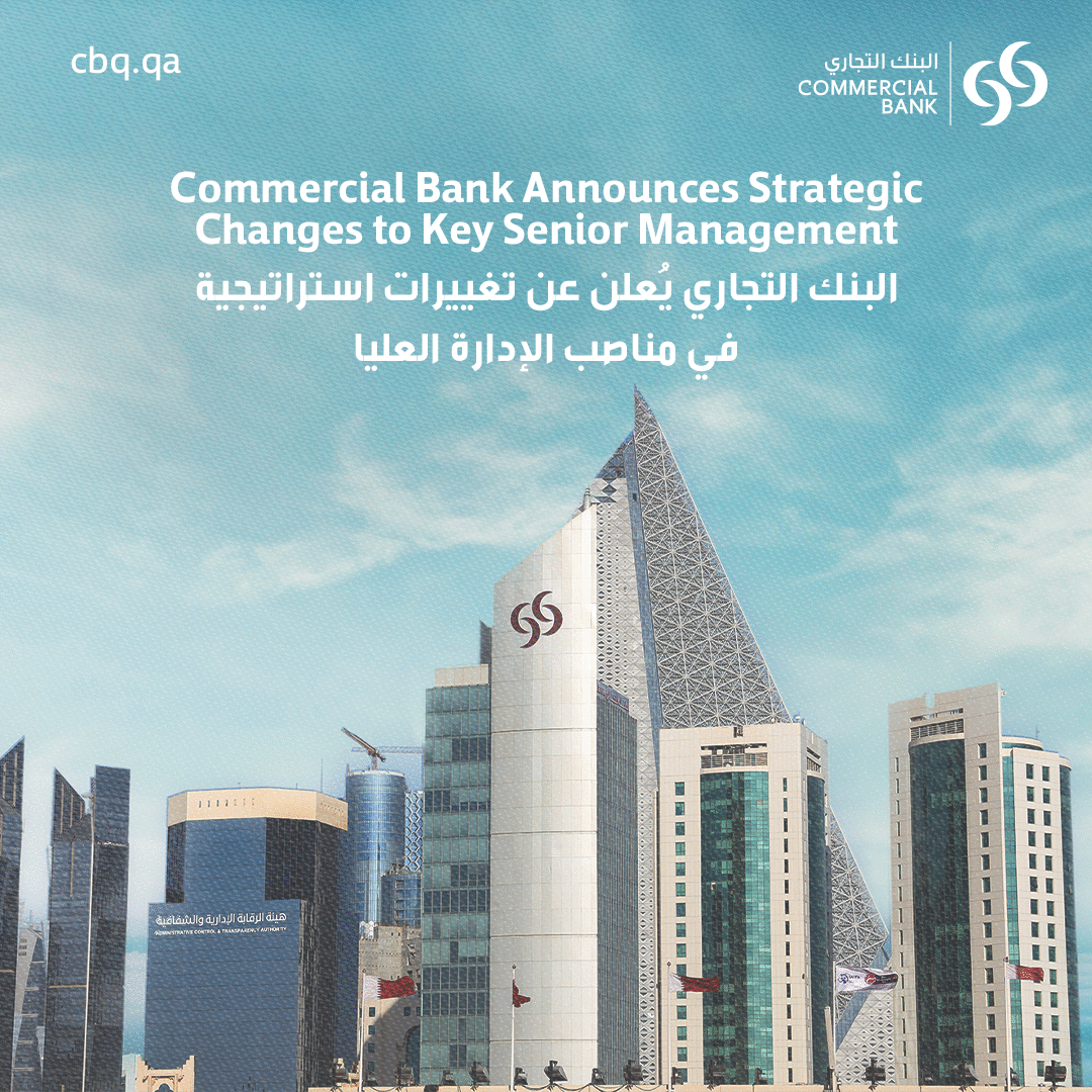 Doha, Qatar – 4 July 2024: Commercial Bank, a leader in innovative digital banking solutions in Qatar, is pleased to announce significant changes in its senior management team. These strategic changes focus on leveraging the extensive expertise of seasoned leaders within the Bank to achieve business objectives and drive long-term growth.