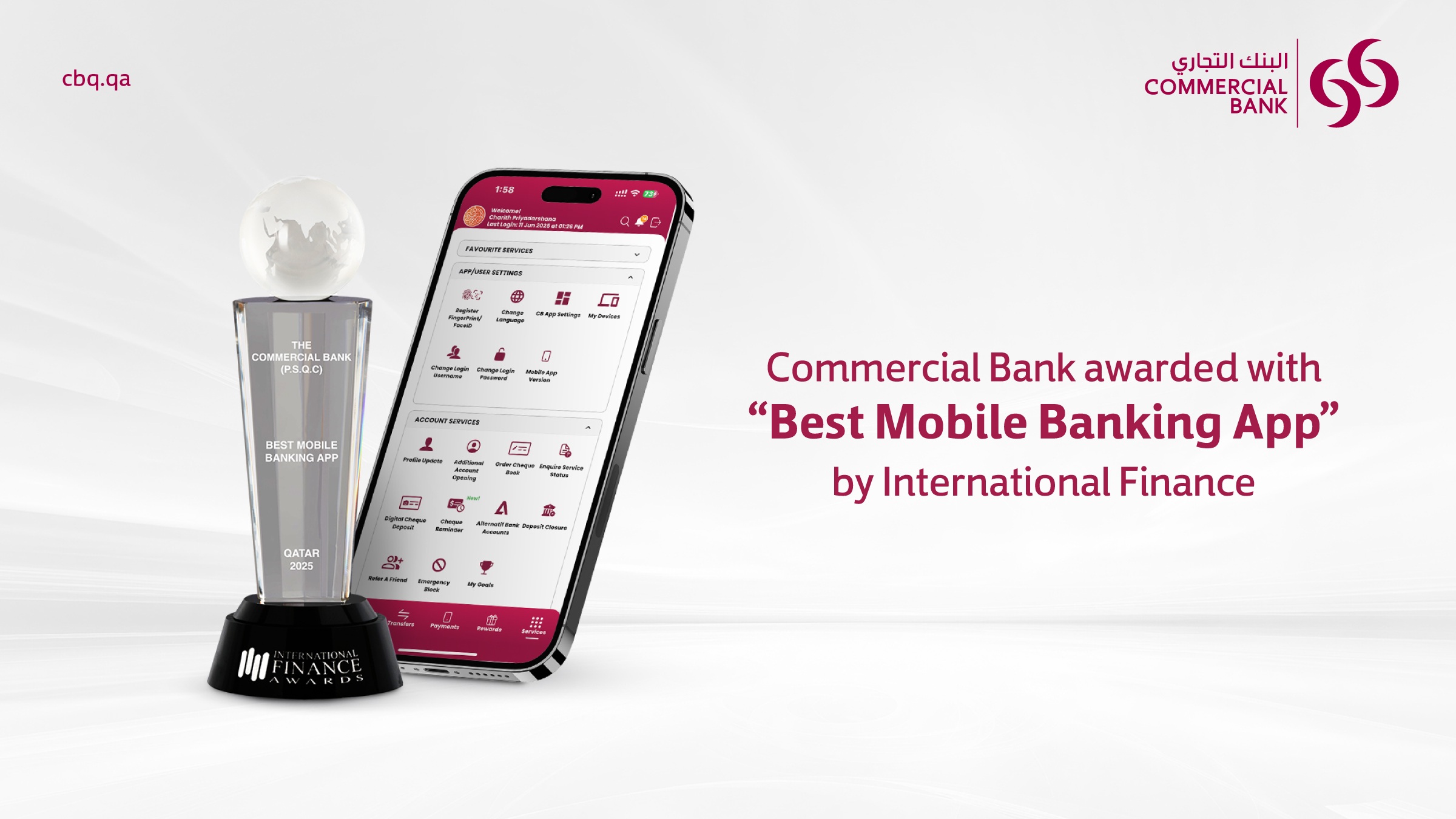 “Being recognized with Best Mobile Banking App by International Finance is a proud achievement for Commercial Bank. It reflects the success of our continued investment in technology and customer experience. As a key player in the banking sector in Qatar, we are committed to offering market-first services while setting new industry standards and supporting the goals of Qatar National Vision 2030.”