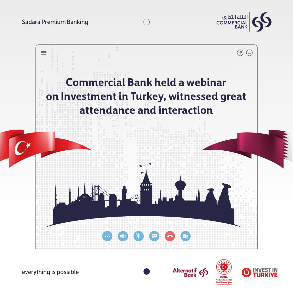Doha, Qatar: On Wednesday, March 31st, Commercial Bank hosted its first exclusive webinar: “A Window of Investment Opportunities in Turkey through Commercial Bank," providing its customers with the opportunity to learn more about becoming investors in Turkey.