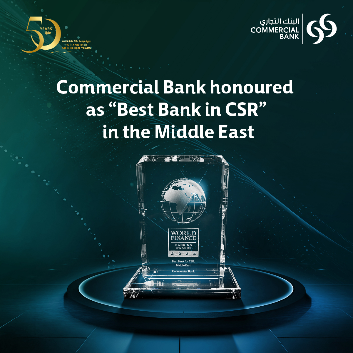 Commercial Bank Honored as Best Bank in CSR in the Middle East by World Finance