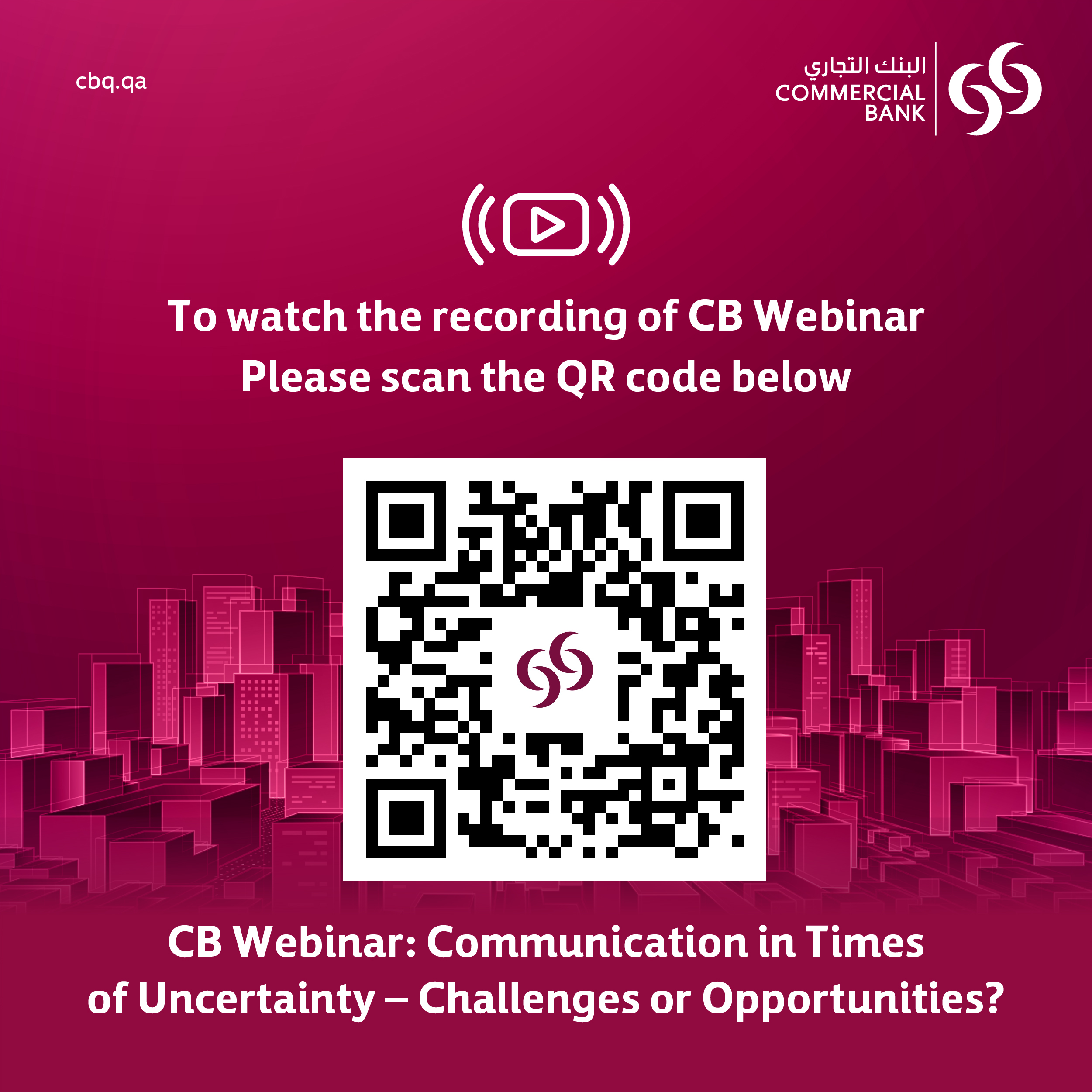 Doha, Qatar: June 22nd, 2022: Commercial Bank, the leading digital bank in Qatar, held a virtual webinar on Monday, June 20th, which addressed the importance of communication in “Times of Uncertainty- Challenges or Opportunities?" specifically in brand communications.