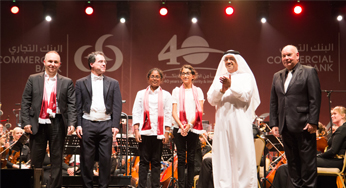 As a way of actively participating in the concert, one Commercial Bank employee and two daughters of employees joined the Qatar Philharmonic Orchestra on stage for the Bank’s anthem and played the clarinet, drums and the piano.