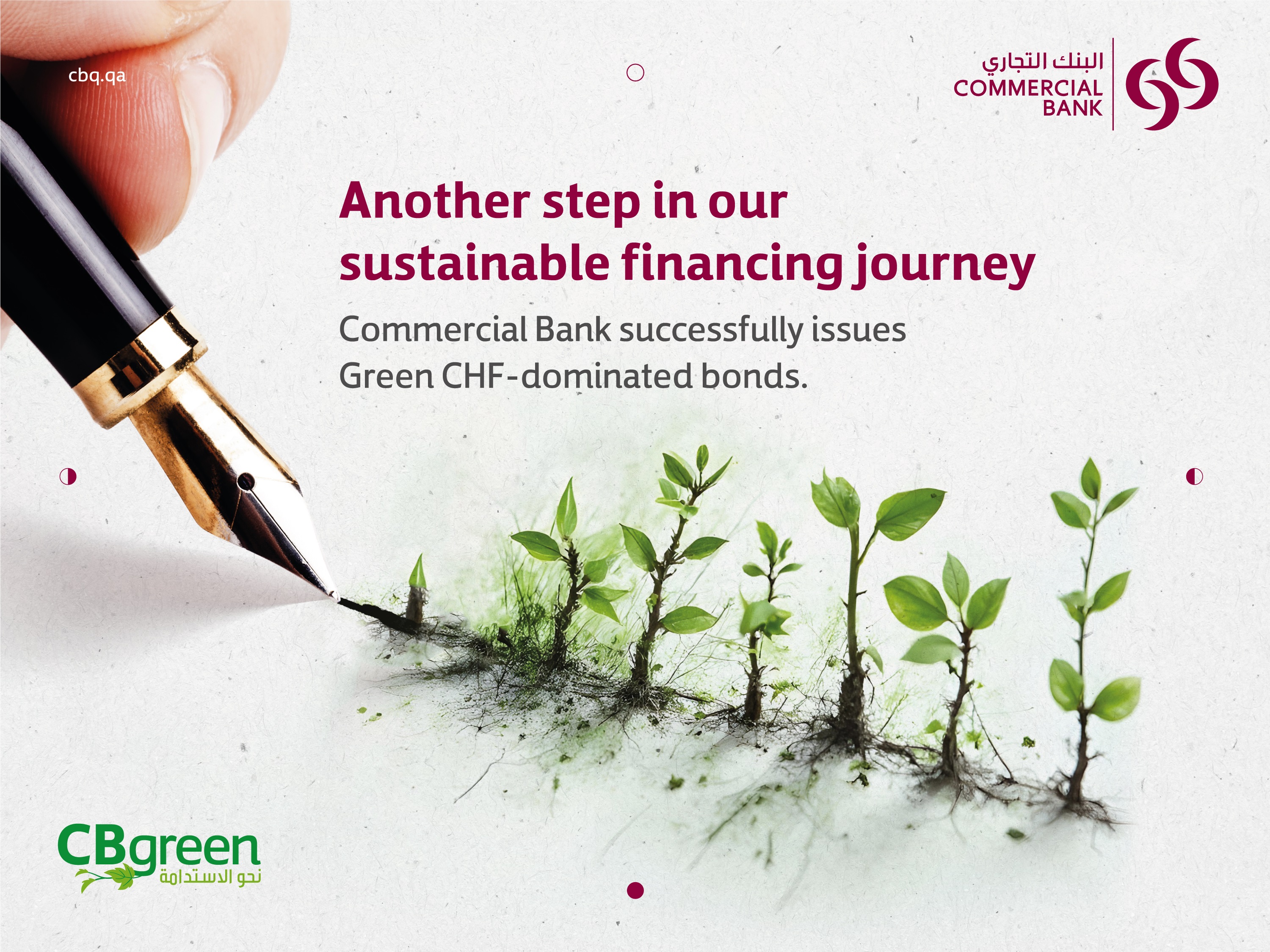 Doha, Qatar: The Commercial Bank (P.S.Q.C.) has successfully issued its inaugural Green Bond denominated in CHF (Swiss Franc). This is Commercial Bank's debut Green Bond issuance under its Sustainable Finance Framework published in 2023 and represents the next step in its sustainable financing journey. The bond is the largest ever CHF Green bond issued in Qatar, the largest CHF bond issuance from Qatar since 2013, and the largest CHF Green bond out of the Central and Eastern Europe, Middle East and Africa (CEEMEA) region since 2021. Initial pricing terms of a spread of 130bps but due to significant demand was tightened by 10bps to a final spread of 120bps with the final size up tiered to CHF 225m from a range of institutional investors.