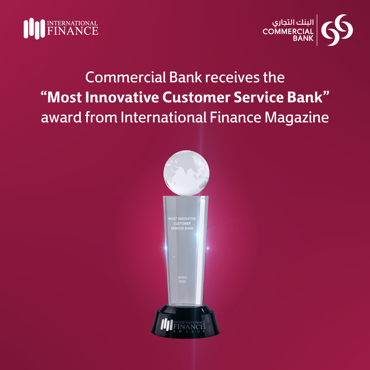 Doha, Qatar, Sunday, July 17, 2022: Commercial Bank, the leading digital bank in Qatar, has received for the second consecutive year, the “Most Innovative Customer Service Bank" award in Qatar for 2022, the prestigious digital award from International Finance Magazine.