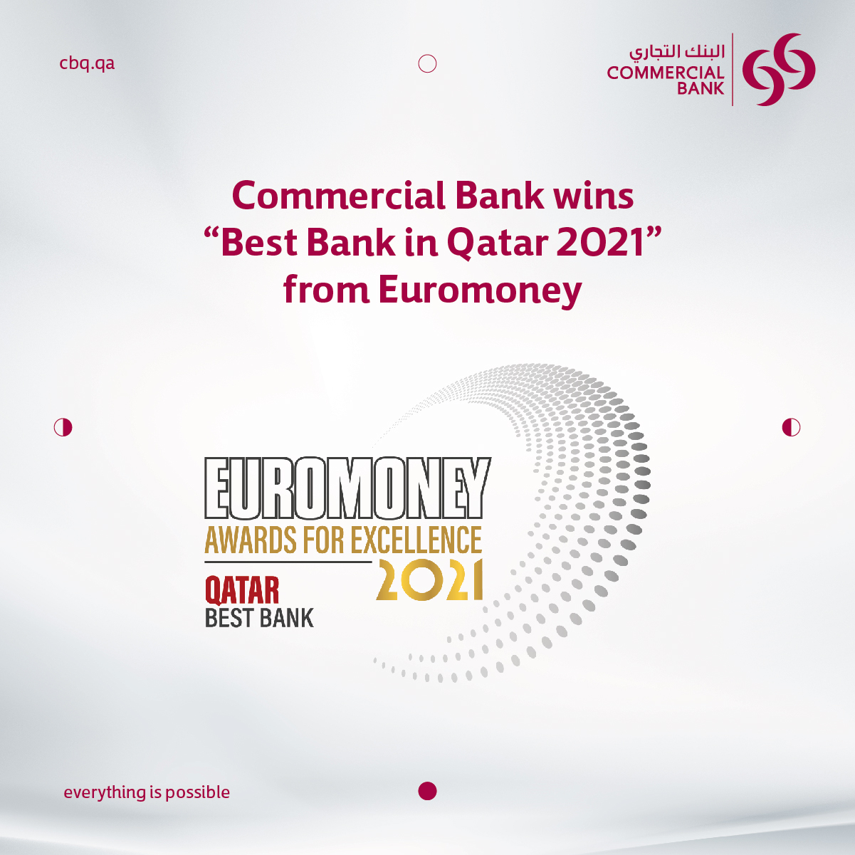 Doha, Qatar: Commercial Bank, the leading digital Bank in Qatar, has received the prestigious “Best Bank" award in Qatar for 2021 from Euromoney.