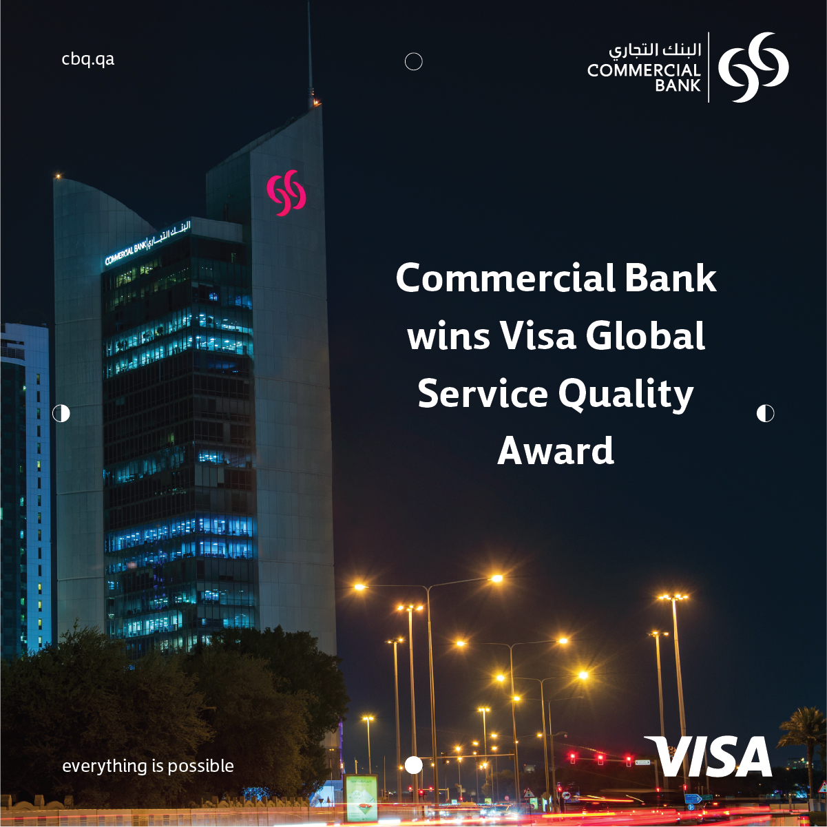 Commercial Bank, the most digitally innovative bank in Qatar, has won the Visa Global Service Quality Award 2020 for the High Authorization Approval Rate, for the Card not Present (Issuing - Cross Border) category.