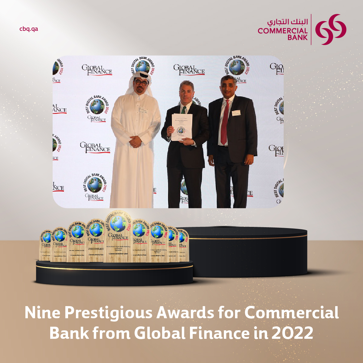 Commercial Bank, the leading digital Bank in Qatar, has received nine prestigious awards from Global Finance in 2022 across both Consumer and Corporate Digital Banking award categories.