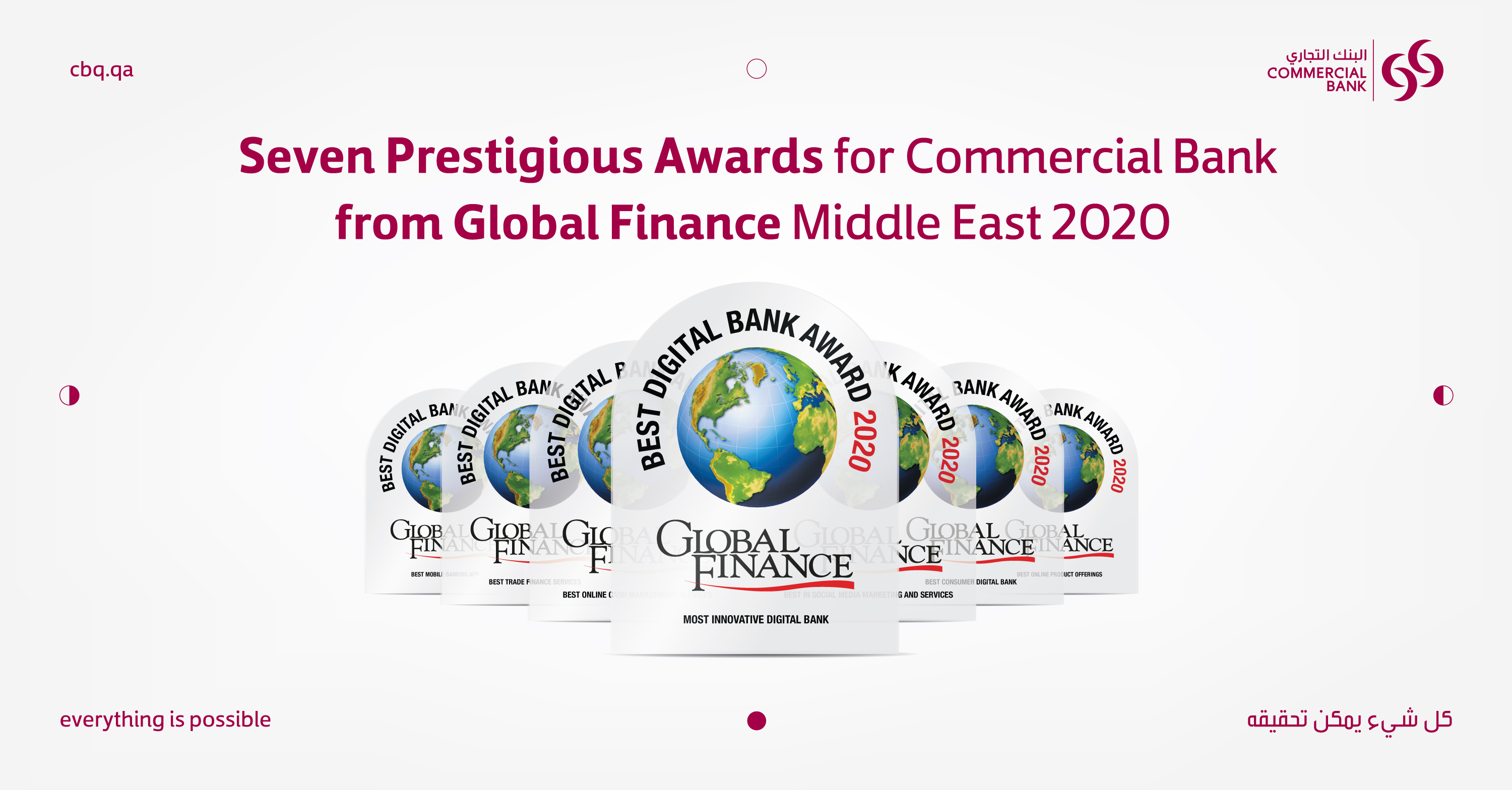 Doha, Qatar: Commercial Bank of Qatar has received seven prestigious awards from Global Finance Middle East 2020 across both Consumer and Corporate Digital Banking award categories.