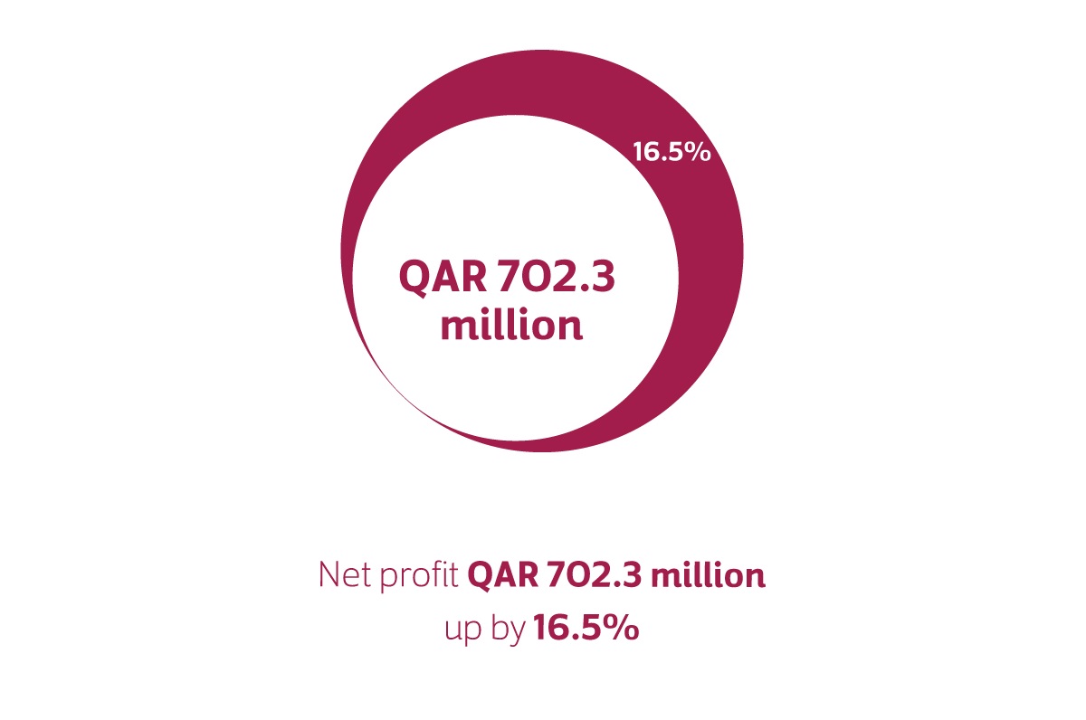 Net profit of QAR 702.3 million, up by 16.5%.