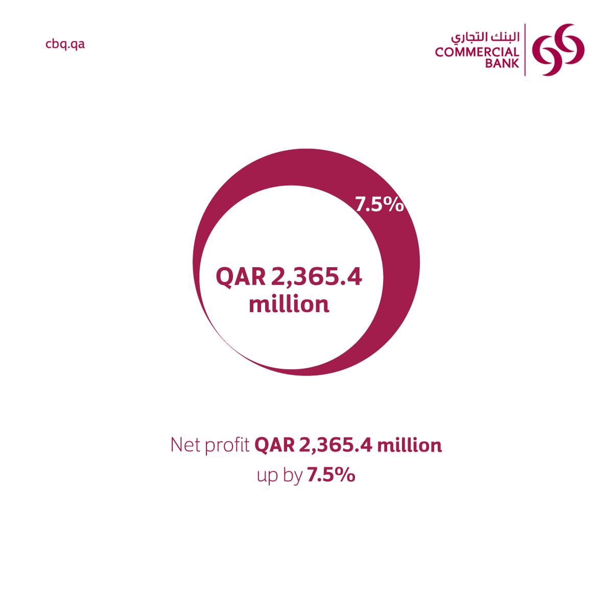 • Net profit of QAR 2,365.4 million, up by 7.5%.