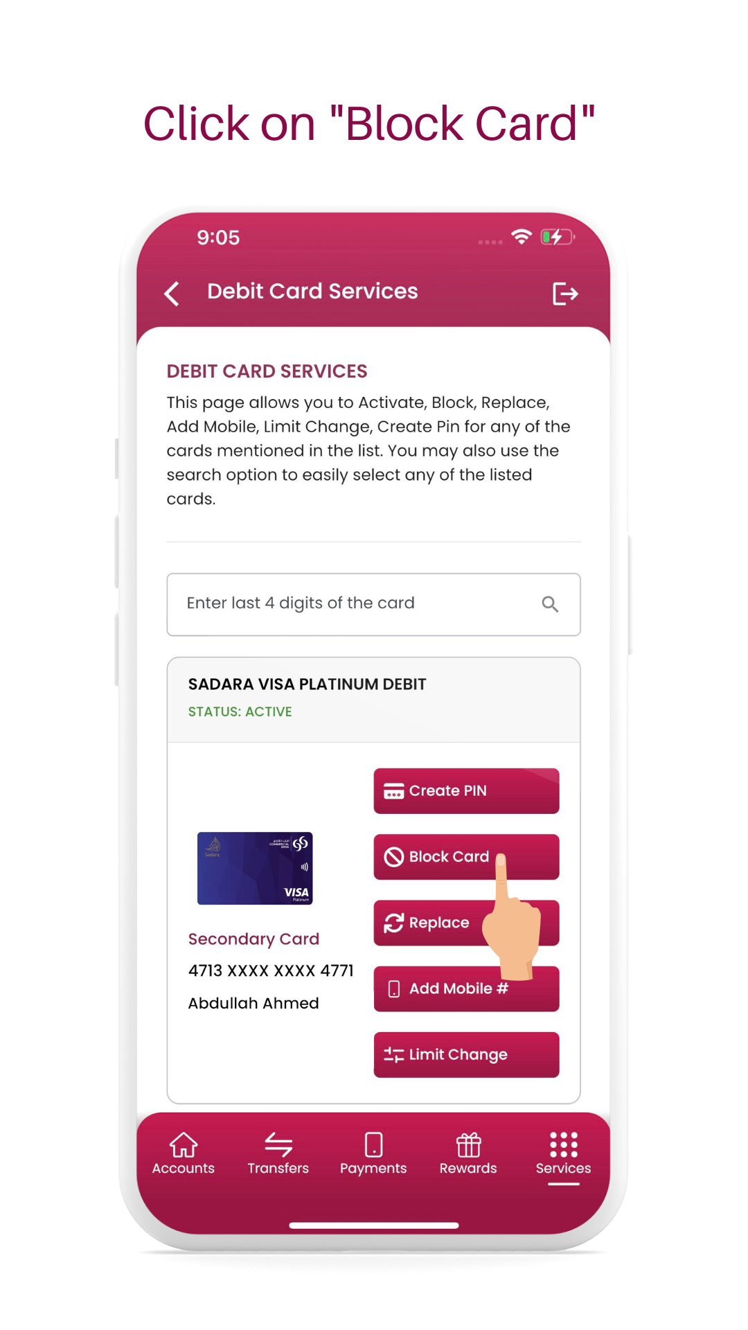 You can issue a supplementary card to your immediate family members. To issue a card a Supplementary card application and the QID of the supplementary cardholder should be submitted to a branch.